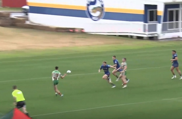 Late Changes - Munro, Dodd and Mamouzelos are out. Kalo Kalo starts on the wing, Quinn at five-eighth Humphries at half, Ngatikaura at hooker, Kelso on the bench. Mihinui was the concussion sub. Despite the heavy conditions at a rain-soaked Kellyville Park, the Eels’ march towards a top-three finish in The Knock-On Effect NSW Cup continued at the expense of a weakened South Sydney side, following their 52-4 win this afternoon. The win was set up by an imposing first-half performance from the Eels who capitalised ruthlessly on Souths’ errors and ill-discipline to lead 34-0 despite the appalling conditions. An early shift inside Souths’ 20-metre zone proved fruitful for the home side early on when winger Haze Dunster crossed over in the northeast corner in the third minute, converted by fullback Te Hurinui Twidle from the touchline. Off the back of two penalties and a six-again call inside Souths’ 20, Dunster soon had a double for the afternoon when he finished off another slick back-line movement to slide over again in the northeast corner in the 16th minute. With Twidle again converting from the sideline, the Eels doubled their lead to 12. Parramatta’s early territorial and possession dominance continued to produce points when five-eighth Lorenzo Talataina showed considerable pace from the scrum win inside Souths’ 20 to slice through the gap and score to the right of the uprights to give the home side a 18-0 lead after 21 minutes of play. Parramatta’s forwards were dominating up the middle and off the back of another strong set, back-rower Kelma Tuilagi found space out on the right edge, kicked ahead and grounded the ball to score in the northeast corner to push the lead out to 22 after 26 minutes. The point-scoring spree in the first half continued when a quick play-the-ball short of the Souths try-line enabled hooker Joey Lussick to dive over from dummy-half to give the Eels an imposing 28-0 lead in just 34 minutes of play. Yet another Souths error inside their own 20 proved to be telling when the Eels constructed another try from a scrum win when Talataina floated a cut-out pass for an unmarked Bailey Simonsson to score in the northwest corner, with Twidle again converting from the touchline to send the home side into the sheds leading 34-0 at the main break. It didn’t take the hosts long to open their account in the second half either when Eels half Ronald Volkman slapped the ball out left for Tago to catch and pass to Simonsson to acrobatically cross over for arguably one of the tries of the afternoon to score his second to put Parramatta further in front 38-0 after just 45 mins. It went from bad to worse for the Rabbitohs when the Eels scored from the next set, courtesy of a long-range break from Tuilagi who found centre Richard Penisini in support to score out wide to push the margin out to 42 points in the 48th minute. Simonsson soon had his hat-trick finishing off another slick Eels back-line movement with Talataina again instrumental in the lead-up to push Parramatta towards 50, leading 46-0 after 54 minutes. It took just another seven minutes for the Eels to bring up 50 unanswered points when Simonsson this time turned provider, making a break down the eastern touchline before lobbing the ball back inside for Twidle to join the try-scoring list, converted this time by Volkman. The Rabbitohs finally opened their account in the 74th minute when Ruatapu Laurence Ngatikura reached out from dummy-half to score out wide with half Matthew Humphries unable to convert, to provide the final score-line 52-4 in favour of the Eels.