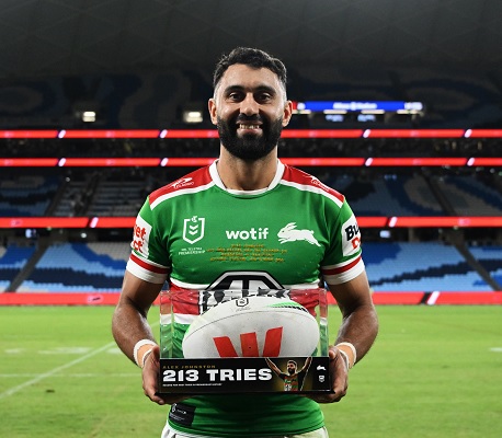 A proud one-club player, Johnston surpassed the 53-year-old record held by the late Ken Irvine by crossing for his 213th career try in the 41st minute of his side’s clash with the Sydney Roosters at a sold-out Allianz Stadium. The La Perouse junior, of Papua New Guinean, Aboriginal and Torres Strait Islander heritage, reached the milestone in his 245th Premiership appearance — a moment widely regarded as one of the most significant individual achievements in the history of the game. Johnston debuted as a 19-year-old in 2014 and has achieved the record at the age of 31. His strike rate was extraordinary, taking 63 matches for his first 50 tries, 78 for his second, just 38 for his third, and 52 for his fourth. In 2022, Johnston became the Rabbitohs’ all-time leading try-scorer during Indigenous Round, surpassing club legend Nathan Merritt with his 147th career try. He is also the leading try-scorer in the 26-year history of Sydney’s Accor Stadium (formerly Stadium Australia). Johnston is a three-time recipient of the Ken Irvine Medal, awarded to the game’s leading try-scorer, winning the honour in 2020, 2021 and 2022. In 2022, he became the first player in Premiership history to score 30 tries in consecutive seasons.