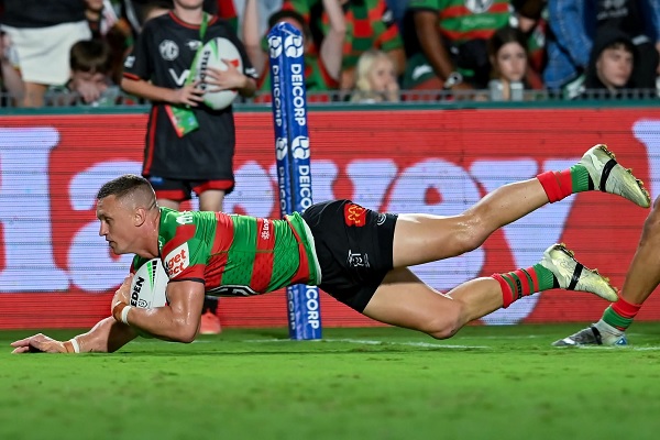 South Sydney open the scoring after a arm wrestle opening period of the half. Humphreys put up a well placed kick, Johnston knocked it back to Mitchell who scored. Mitchell failed to convert. From the kickoff Kolomatangi dropped the ball and Mamouzelos cleaned up the ball offside. The Wests-Tigers kicked a penalty goal and we were locked up at 16 all. Mitchell then kicked off out on the full putting the Rabbitohs under pressure again. But the Tigers failed to capitalise. Then in the 65 minute chasing a kick Luai went off with a leg injury. South Sydney broke the deadlock when Walker kicked in behind the line that saw the bouncing ball beat a number of players to land at Alex Johnston's feet to score his 214th firat grade premiership try. Mitchell failed to convert. In the dying minutes Douehi also went down with a hamstring injury. South Sydney hang on to win the game 20 to 16.