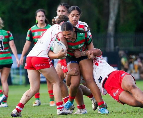 Late Changes - Millward is out. Alatasi starts at prop. Khoury is the concussion sub. Taulaga dropped off the bench. The Lisa Fiaola Cup side started a terrific day for the Club with a commanding 32-0 shutout of the Dragons at Collegians Sporting Complex. The Rabbitohs were relentless in attack and resolute in defence, keeping the opposition scoreless across the entire match. South Sydney opened the scoring with a nice scrum play that saw Ryan-Last score untouched. McKee failed to convert. Rabbitohs go back to back when McKee made a big break before Ryan-Last cleaned up a loose ball to score. McKee failed to convert. Rabbitohs are in again after McKee broke the line from the scrum and scored near the posts. She converts her own try. South sydney lead 14 nil. McKee crossed for her second try when she brushed off poor defence to score. She failed to convert her try. A nicely worked play saw McKee and then Ryan-Last draw and pass to send Ballard over for a try. McKee failed to convert. Halftime South Sydney in a dominate lead 22 nil. Some quality defence starved a committed Dragons outfit for the opening quarter of the half. Then a break combined break by Trasler and Falepapalangi set field position. And Ogle scored near the posts. McKee converts. Some nice offloads and then a backline spin saw Ballard in for her second of the afternoon in the corner. McKee fails to convert. It was a comprehensive victory for the South Sydney U17 girls 32 nil.
